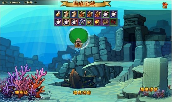 点击游戏界面上的按钮 ,可以进入海底宝藏。