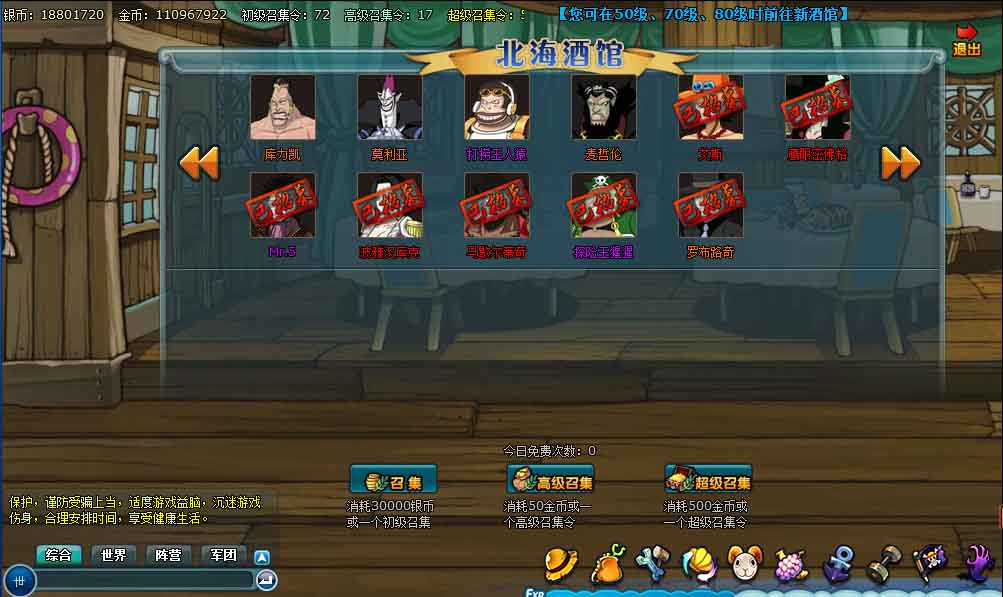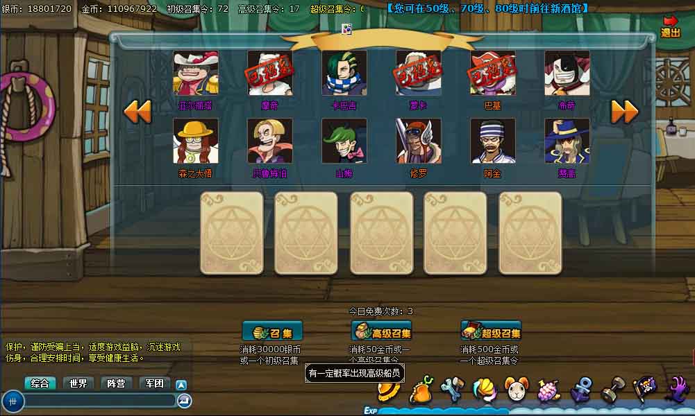 随着等级的提升,开放的酒馆越来越多,可以招募到的高级船员也越多。