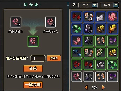 贝壳的合成:高级贝壳可以通过低级贝壳合成,如2个1级命中贝壳可以合成1个2级命中贝壳。