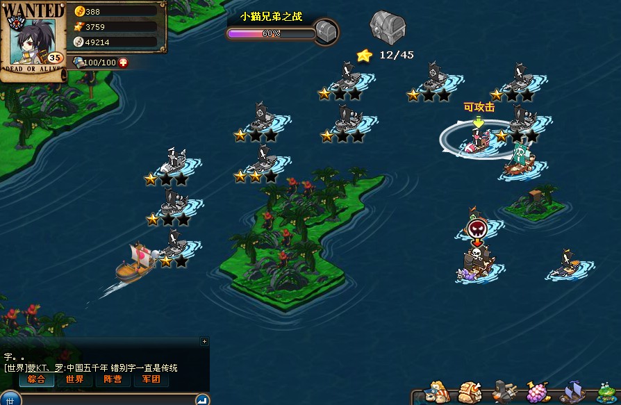 战斗操作:战斗采用自动战斗模式,玩家通过在战前预先设置好阵法和船员,在战斗中将领根据回合发动技能。