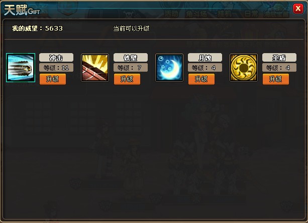 在达到一定等级时,游戏面板右下角会出现“天赋”按钮,如下图: