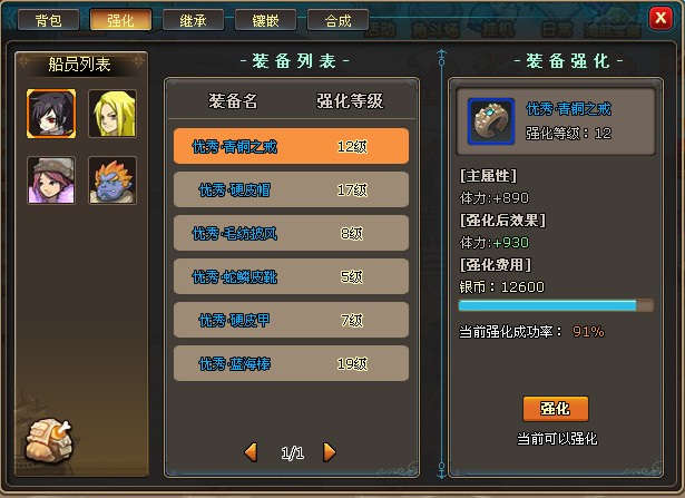《小小海贼王》游戏内装备强化是通过强化系统完成的。