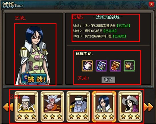 区域3当达成当前试炼的所有目标后,即可领取试炼奖励,并且开启下一试炼