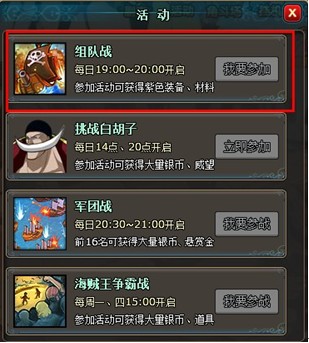 组队战每日19:00开启,在参战图标亮起后即可参加。要参与活动中的每日组队战,首先点击活动中的组队战图标。