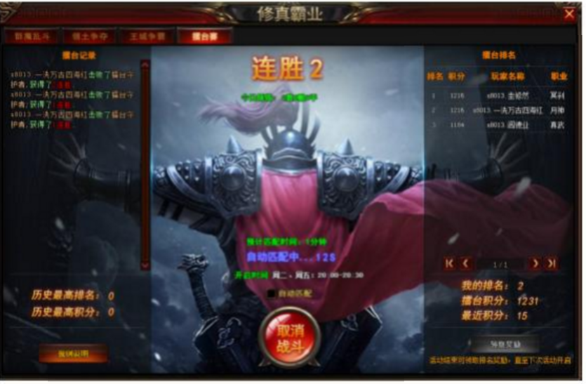 3、玩家在修真霸业界面选中擂台赛,点击“开始战斗”即可匹配对手。