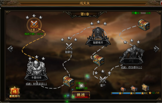 通关每一章才能进入下一章挑战,每一张都有3个BOSS,掉落较好道具。
