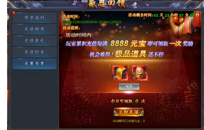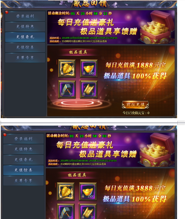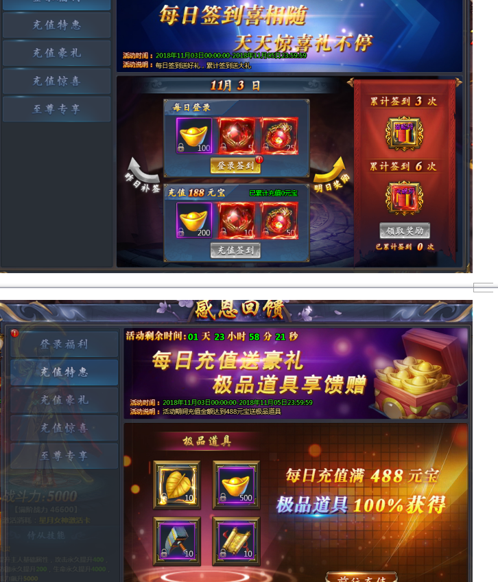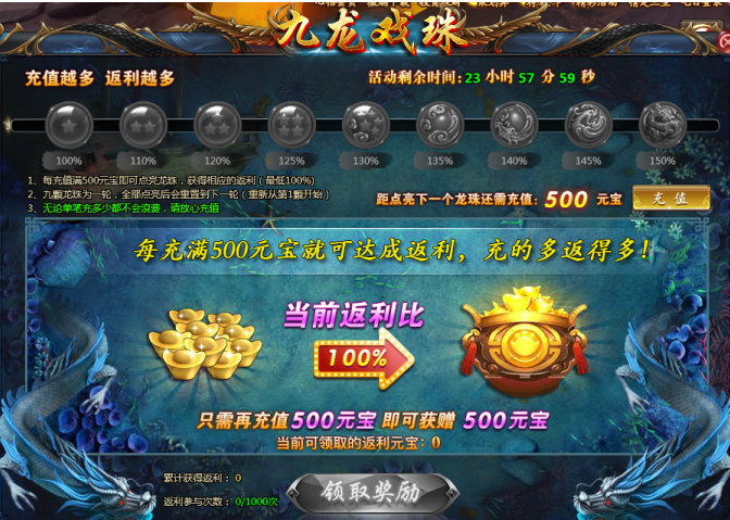 活动期间玩家每充值500元宝,即可获得相应的元宝返利