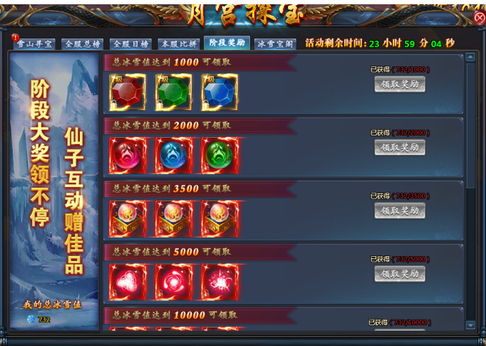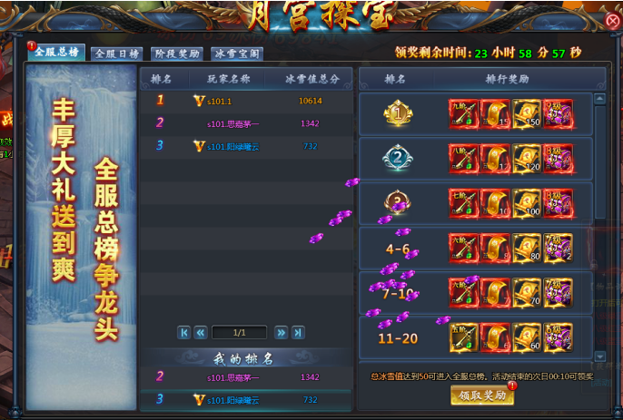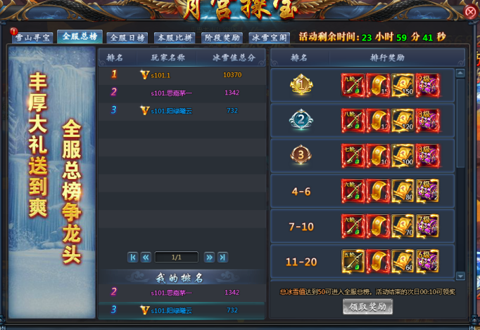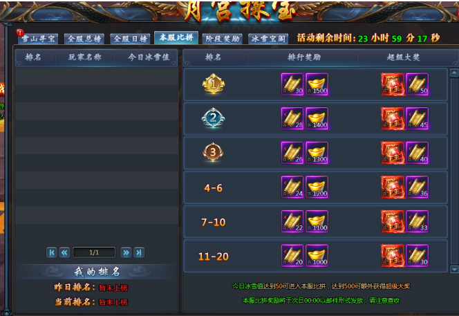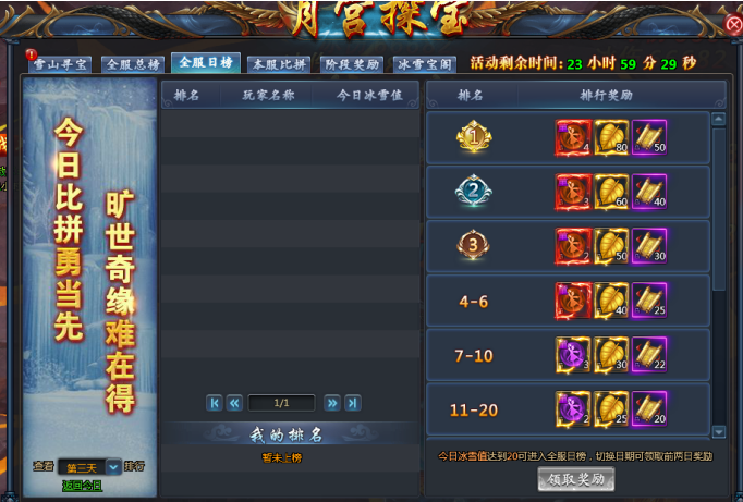 全服玩家当然获得的积分进行排名,可以在次日00:10分以后领取前一日奖励
