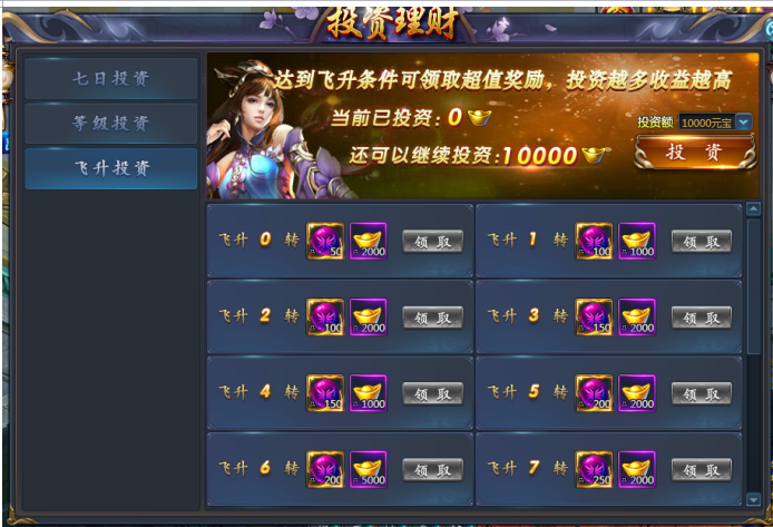 等级到达200级开启,飞升投资可以获得绑元和飞升丹