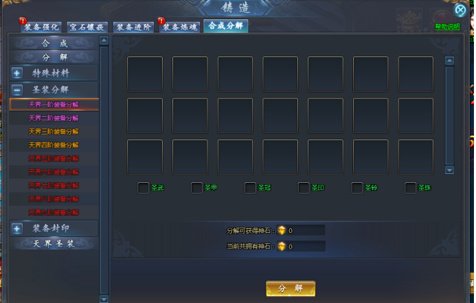 增加天界装备分解功能