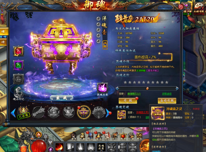 突破器魂除了可以获得战力之外,还会额外百分比提升器魂的属性
