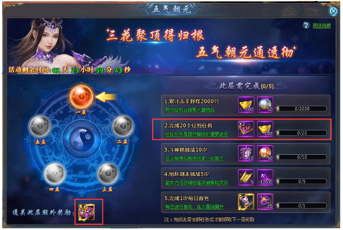 补偿内容为图中红框所圈出部分,第五层需要玩家单独向客服反馈查询之后进行发放