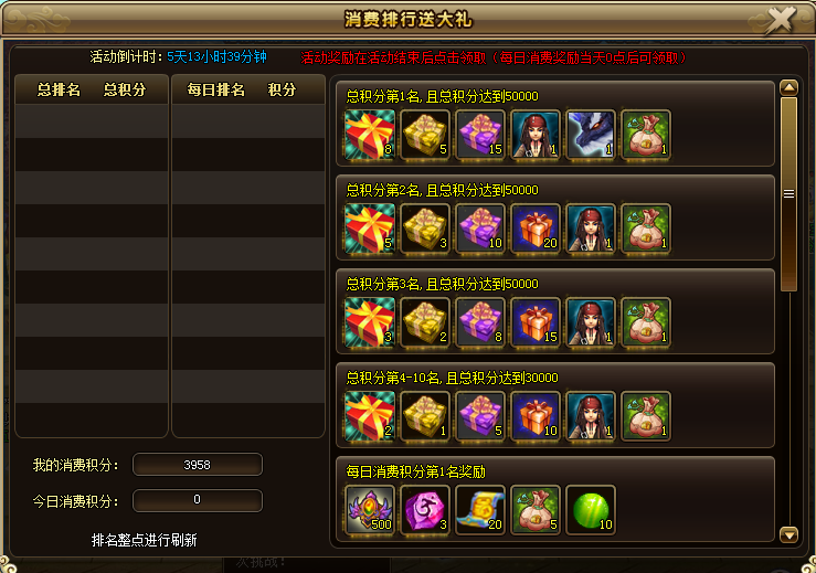 温馨提示:1、排名奖励在活动结束后点击领取奖励。