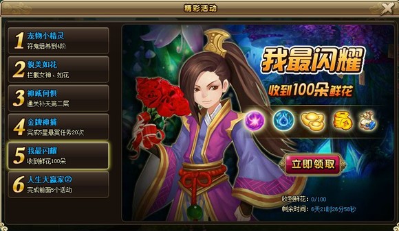 活动目标:收到100朵鲜花