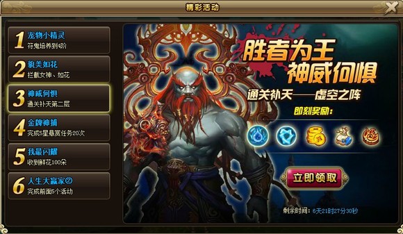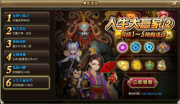 活动奖励:铜钱*50W,阅历*5000,2级宝石袋*2,五品丹药礼包*1