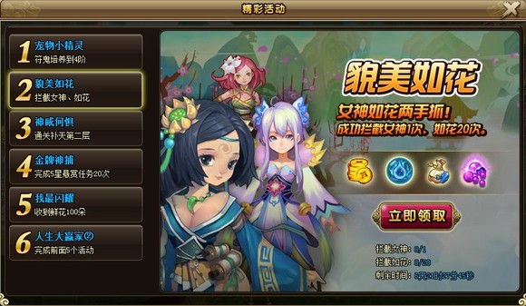 活动目标:成功拦截女神1次,如花20次