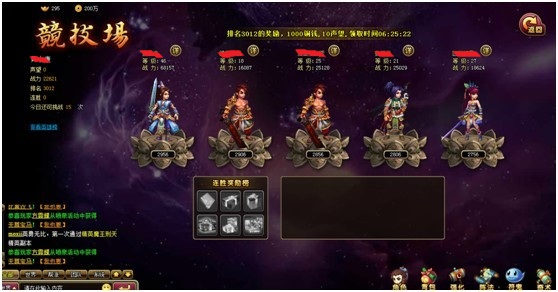 三.在竞技场中,玩家可自由选择另一玩家进行PK;可查询所要PK的玩家的信息;可在PK之前进行布阵、强化等操作;在选定一个玩家进行PK后,获得胜利的一方可获得一定奖励;反之挑战失败也会获得小部分奖励;