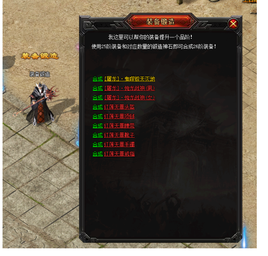 炎龙传奇新增装备锻造NPC,玩家通过活动获得锻造神石,可以在炎龙城—装备锻造NPC,消耗锻造神石和25阶装备合成26阶装备。