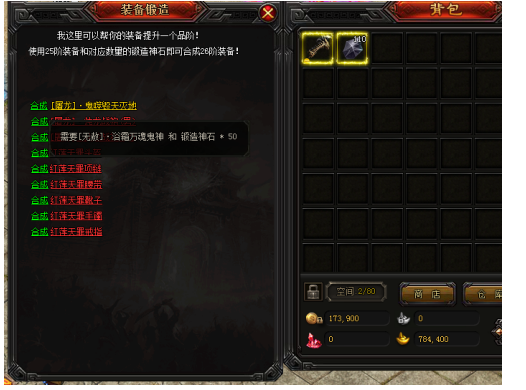 2、 新增加装备锻造功能,可以在元素大陆-装备锻造NPC处体验