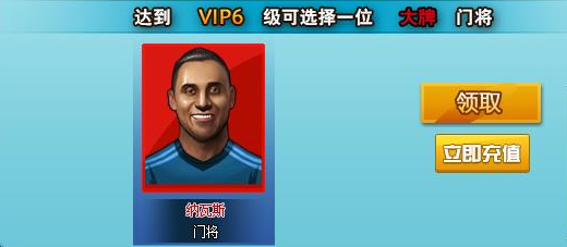 当玩家达到VIP6,即可免费领取红色门将纳瓦斯!!