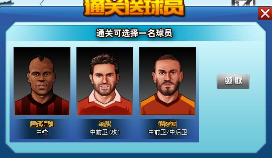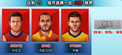 当玩家经理等级达到15级,即可免费领取大牌球员一位!