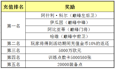 各位玩家在活动期间的充值会进行平台排名,充值前五名的玩家将得到额外奖励哦!