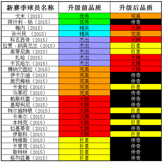 本次将对新赛季球员进行更新,届时各位玩家在对相应的老版球员更新后,即可得到新赛季球员。具体对照表请见下表: