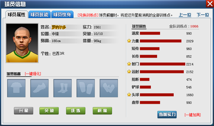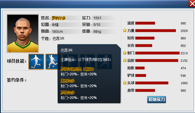 《一球成名3》所有平台充值金额第一名的玩家可以再额外获得罗纳尔多一名!!!
