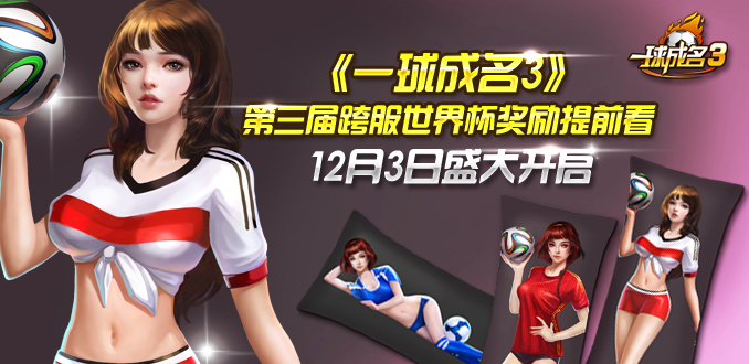 获得跨服世界杯前三名的玩家,将获得由《一球成名3》制作团队特别定制的实物奖杯、荣誉证书及独家限量版抱枕!