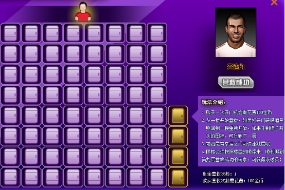 玩家爬到最高层,可获活动指定巅峰球员一名!“球员大营救”活动开启期间,您每天可以获得一次免费开门次数。