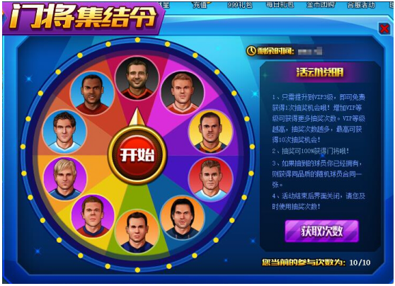 3、增加VIP等级可获得更多抽奖次数。VIP等级越高,抽奖次数越多,最高可获得10次抽奖机会!