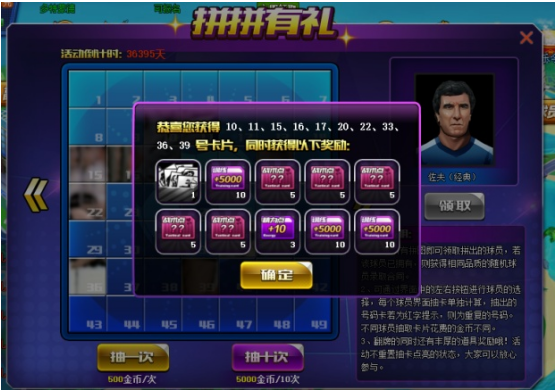 5、抽到的球员直接发放到您的阵营中,请您提前预留替补位置。