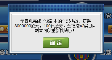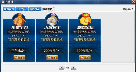 1、该副本一共分为3个难度档次——小试牛刀、大展身手、制霸足坛;