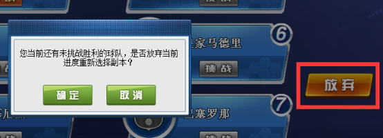 副本界面右侧的“放弃”按钮,一旦确认选择,将退出副本重新开始,再次进入副本是需要消耗金币的哦,请您慎重操作~