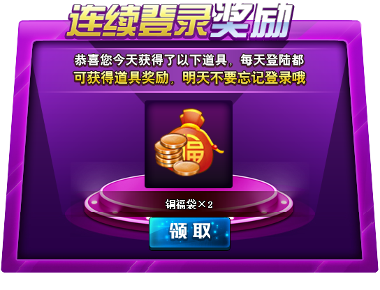 更新后,您只需连续登录游戏,即可领取福袋好礼!