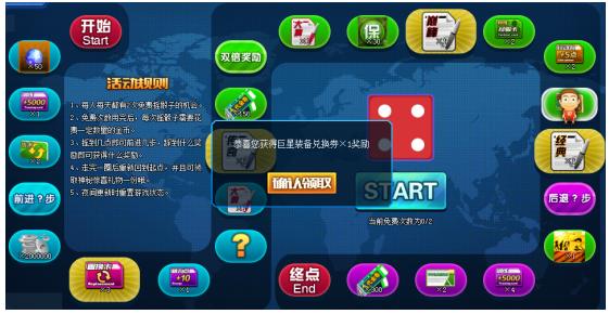 1、每人每天有2次免费摇骰子的机会;
