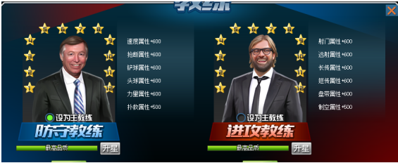 2.教练升星后新增门将扑救与制空属性,其中防守教练新增扑救属性,进攻教练新增制空属性。