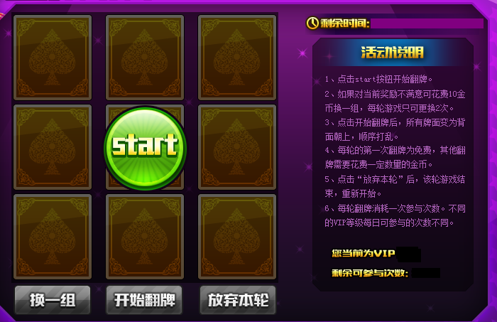 6、每轮翻牌消耗一次参与次数,不同的VIP等级每日可参与次数不同。