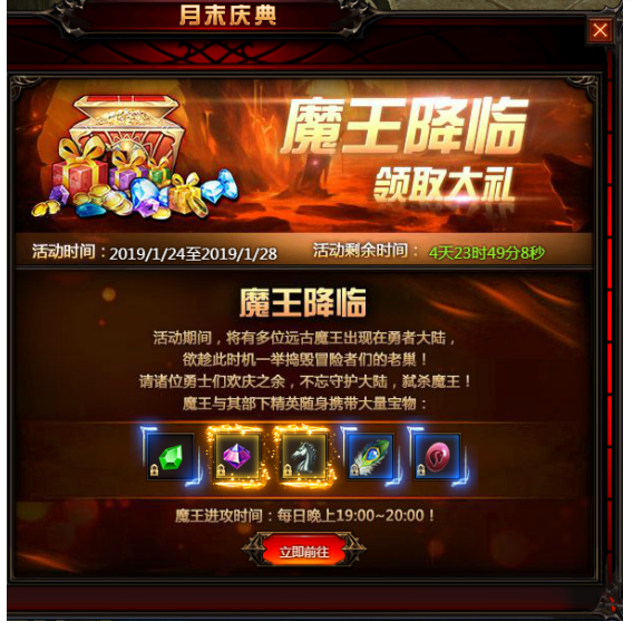 活动内容:活动时间内,每天晚上19:00~20:00勇者大陆会刷新魔王BOSS,击杀BOSS后可获得大量稀有道具奖励和中级晶体。