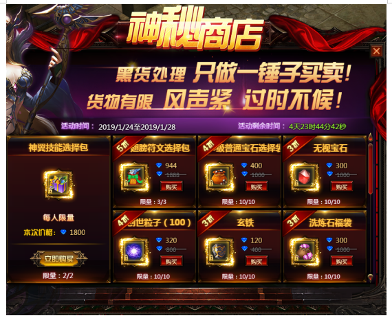 活动内容:神秘商品限时折扣,全场最低折扣低至2折,货物稀有,难得一见,快来选购吧。