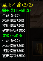 同时提升项羽和虞姬20%最大生命值,20%术法伤害,20%技能伤害,并提升3500点破击等级。