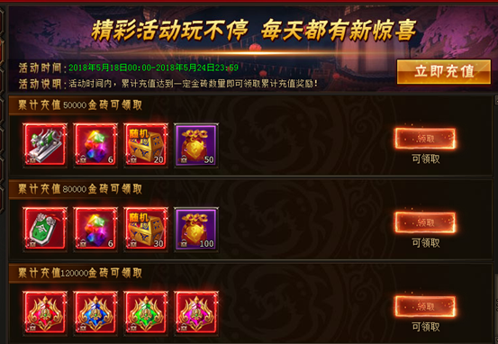 国庆活动期间、玩家充值满足一定条件后即可领取大量顶级道具奖励,同时还会开放对应的限时商城,折扣最低达到1折!材料几乎全是白送、装备基本都是白给。