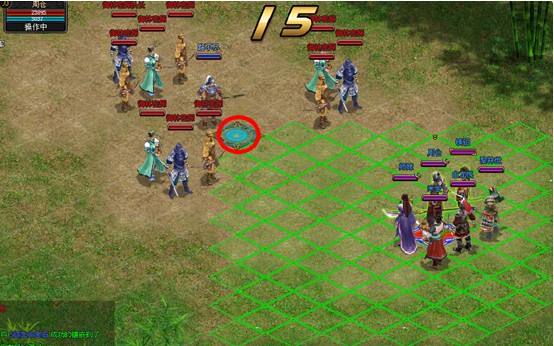 吃了疾风果子,如果有加攻击的药再吃一瓶就差不多了,如图所示,开始不要想太多,选定大刀兵,先冲到路不尽身后加上防御。