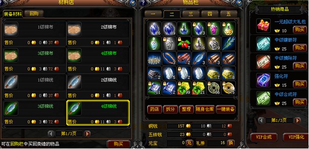 如何能在游戏里挖到第一桶金呢?《战将无二》里面是没有材料采集系统的,只能通过打怪、挖宝获得,所以必要的做一些前期资金投入还是很有必要的。很多游戏里的玩家对装备打造不感兴趣,更有甚者刷到材料以后由于背包满员,所以直接就扔了。打造出来的装备,就算不拿去卖钱,自己用也是很必要的。所以,材料要日积月累。当然装备打造员那里是有一定材料出售的,不过只卖1-4级的材料,5级跟6级的没有出售,只能收购或者打怪掉落。