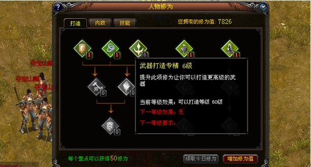 首先,想要打造高等级装备需要把修为里面的“打造”点好,个人推荐优先点打造武器。《战将无二》到四十级所有的时候,一起出战六名武将,副本掉落的装备根本供不应求,所以只能在装备打造上大做文章。至于另外一个分支药品制作,前期作用不大,就算有材料也吃不起,药贵啊!