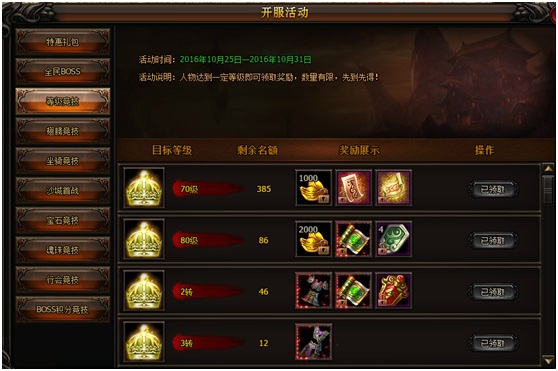 2、开服第7天24点面板消失,此时未及时领取的奖励以邮件形式发放。