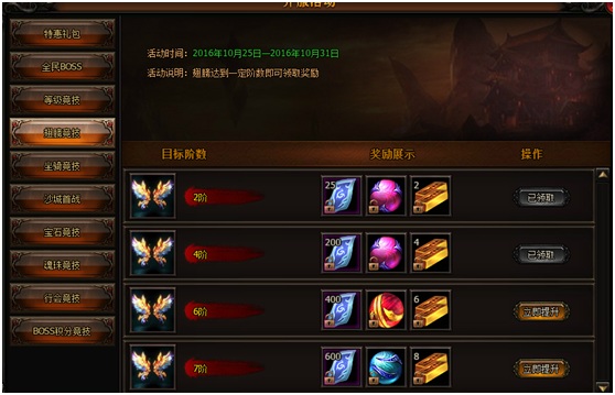2、达到达标翅膀阶数时,可领取达标奖励。