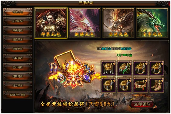2、分四种礼包:神装礼包,翅膀礼包,坐骑礼包,主宰礼包