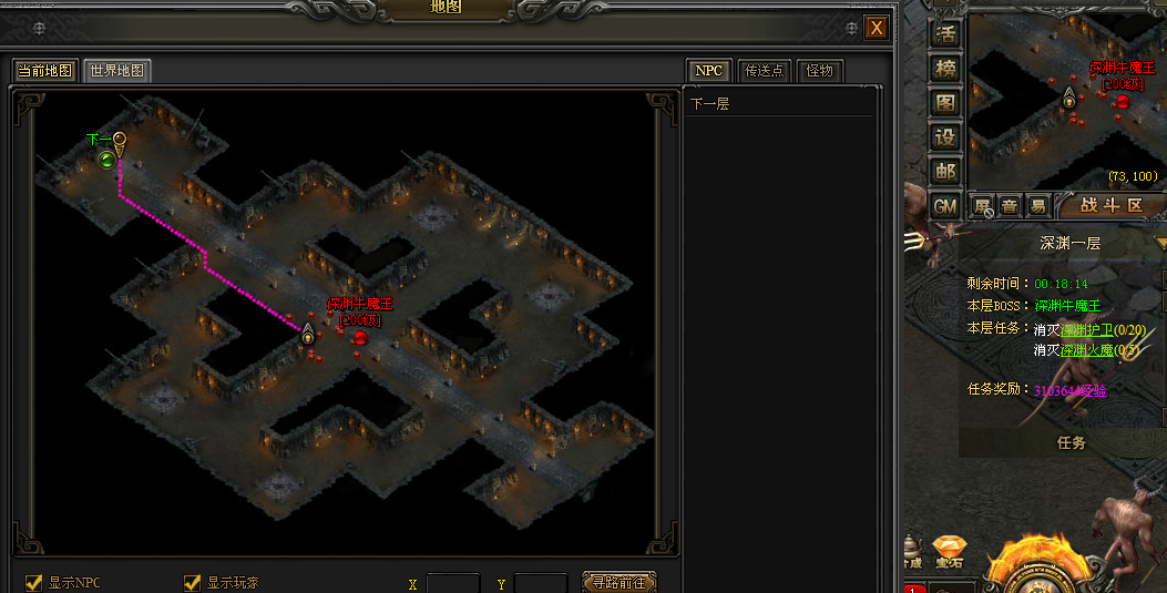 每层还有神秘BOSS,他们的刷新位置是随机的,击杀后获得大量经验且有几率掉落蓝色妖姬等道具!