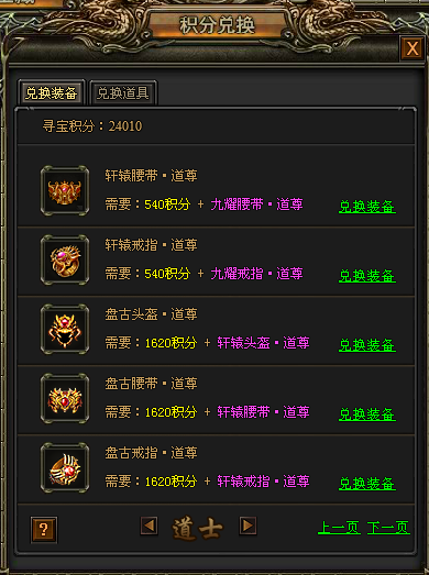 五、 新增探宝积分兑换轩辕盘古装备,极品装备,一探到手!
